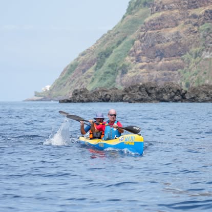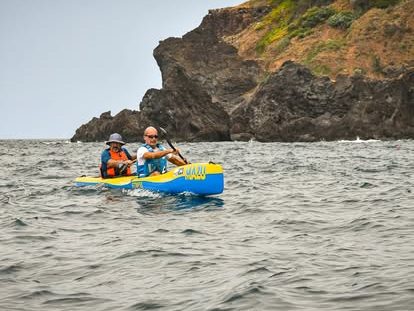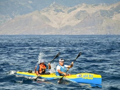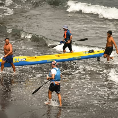 Si lo hubiéramos planificado mil veces no nos hubiera salido de ninguna de las maneras. Sin embargo, la casualidad quiso que lo que iba a ser un viaje solitario en bicicleta por la isla la última semana de agosto se convirtiera en una de las mejores experiencias en surfski que jamas he vivido, la vuelta campleta a isla de Madeira en este caso en K2 en una Mazu Fitness de Elio. Gracias a la incorporación sobrevenida de Carlos que fue el mejor compañero que uno puede tener en K2 y gracias a Mario del Club de Canoa de Funchal por brindarnos esta gran oportunidad en esta experiencia piloto con ese maravilloso grupo de 13 participantes. El recorrido tenía ida y vuelta en Funchal. La primera etapa fue del puerto de Funchal al puerto de Canisal de 24,5km. La segunda del puerto de Canisal al Puerto da Cruz de 25km(muy técnica ya que pasábamos del sur de la isla al norte con grandes olas a partir del Cabo de san Lorenzo). La tercera de 36,8km muy dura y larga desde el puerto de la Cruz a Puerto Moniz y la cuarta y última de porto Moniz Caletha y de nuevo a Funchal, completando un recorrido de 142km en 15 horas. Gracias a Mario Pereira por su hospitalidad, amabilidad y apoyo.